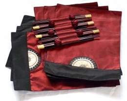 Prostírání pro šest osob s vyšívaným motivem a sadou hůlek