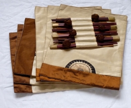 Prostírání pro šest osob s vyšívaným motivem a sadou hůlek světlé barvy